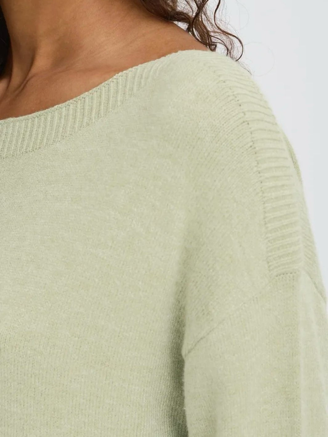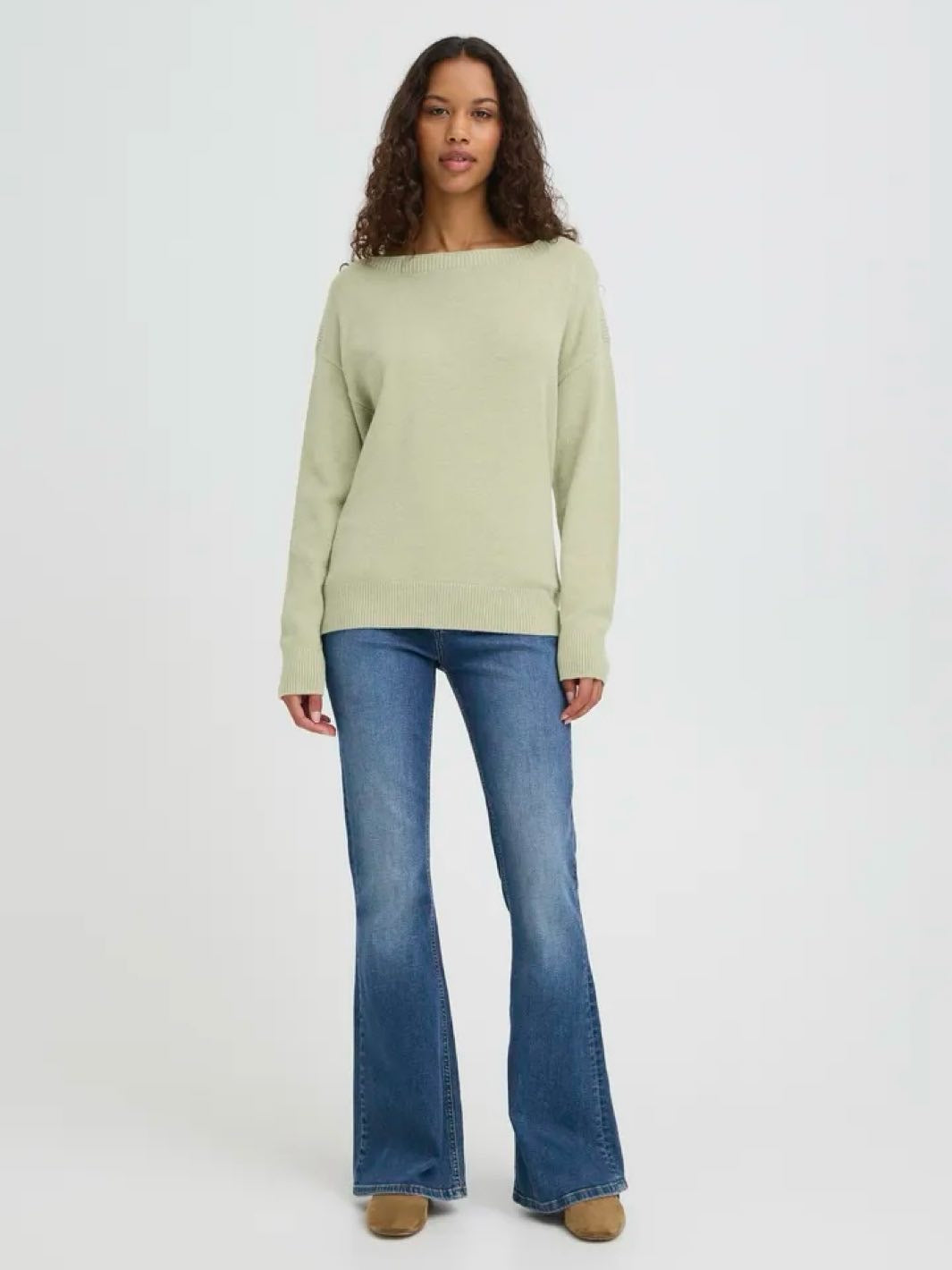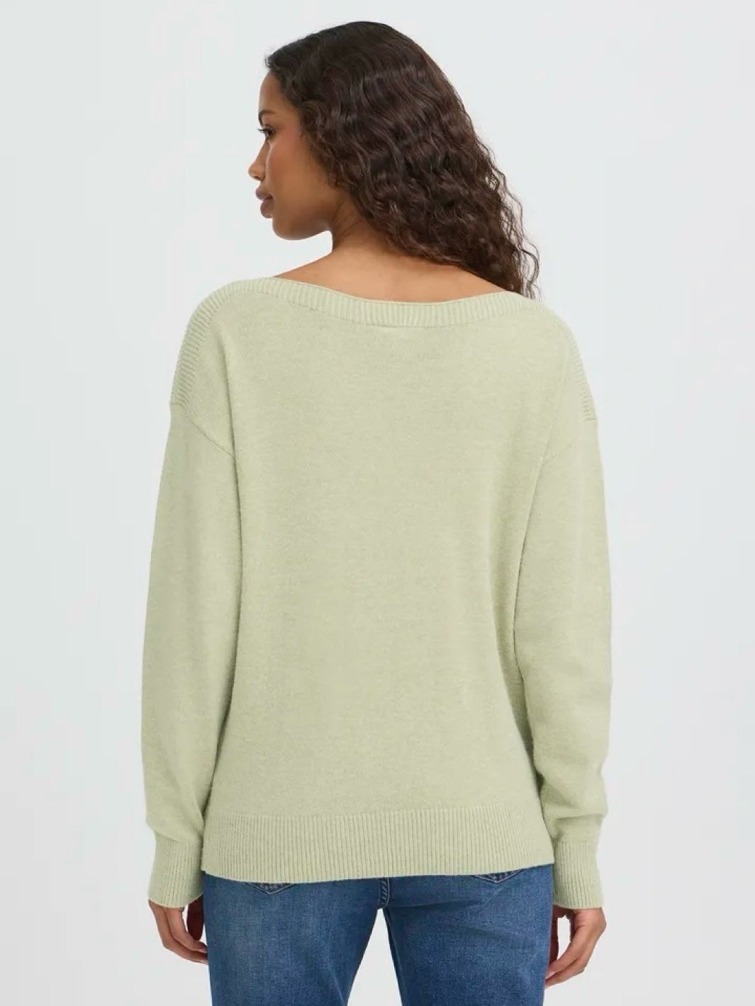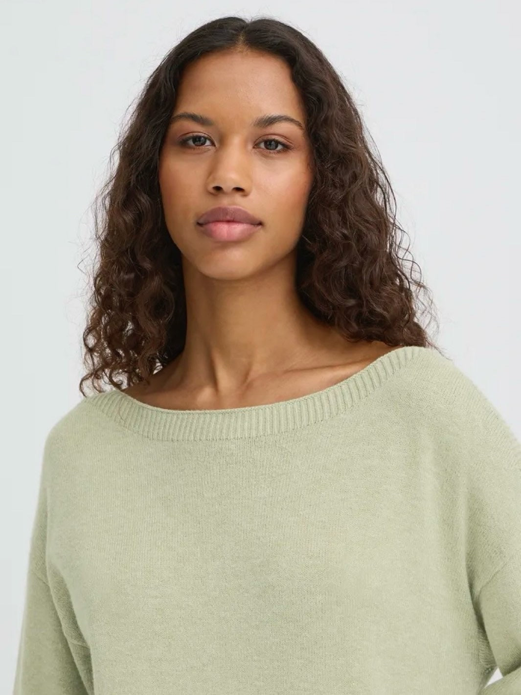 Genser i en myk viskose blanding. Genseren har båthals, ribbestrikket ermer og en avslappet fasong.