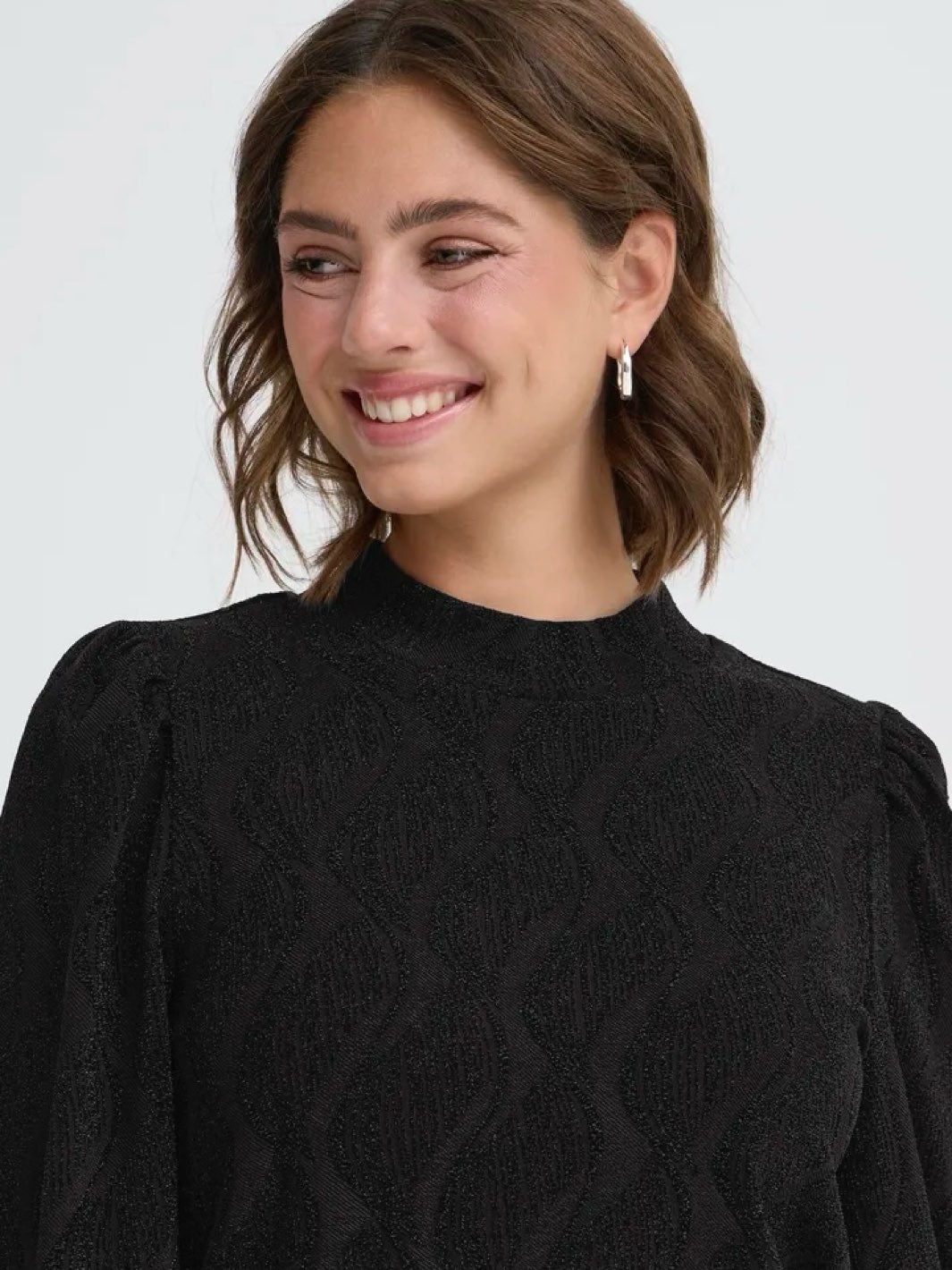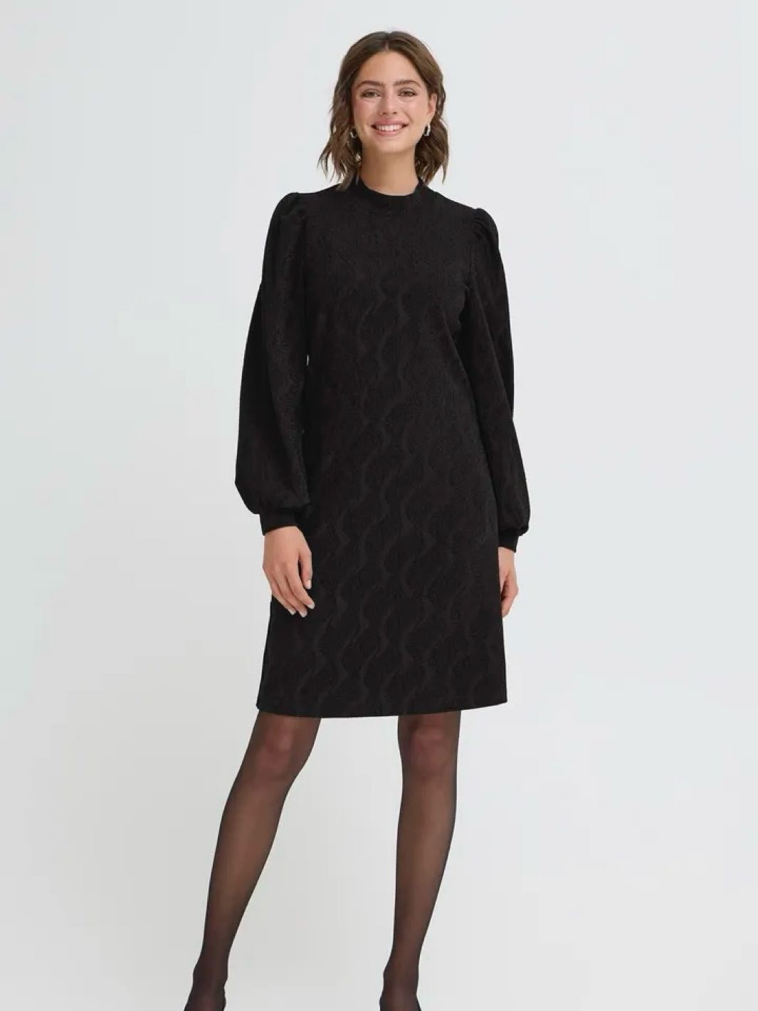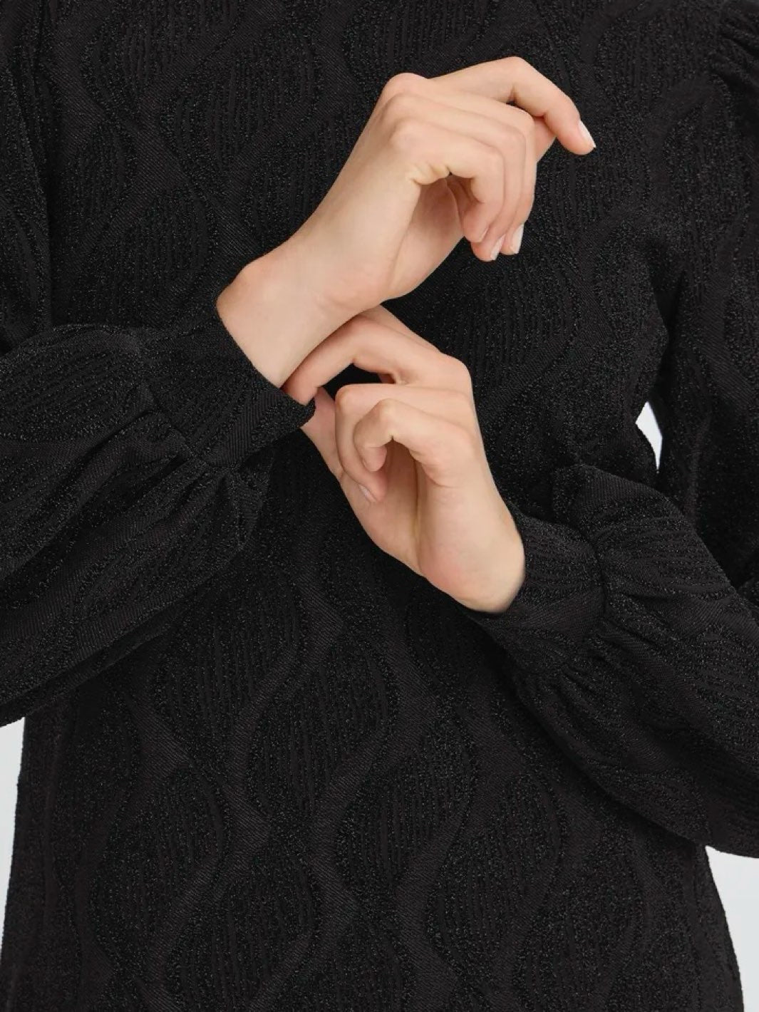 Myk og stretchy glitter kjole med høy hals, lange ermer og en avslappet passform.
