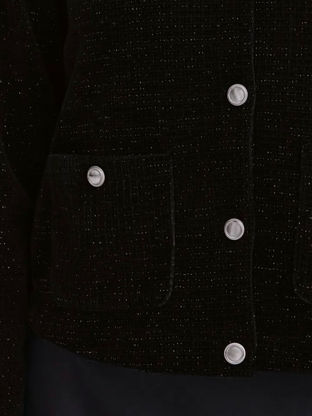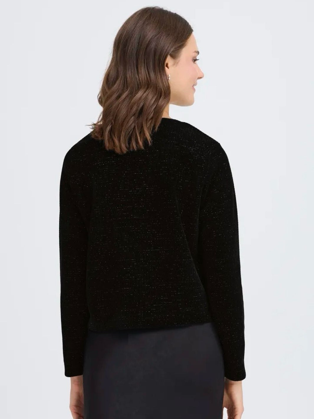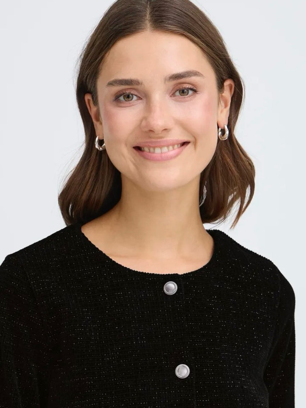 Lekker jakke/cardigan med rund hals, lange ermer og en rett passform. Jakken har heldekkende glitter.