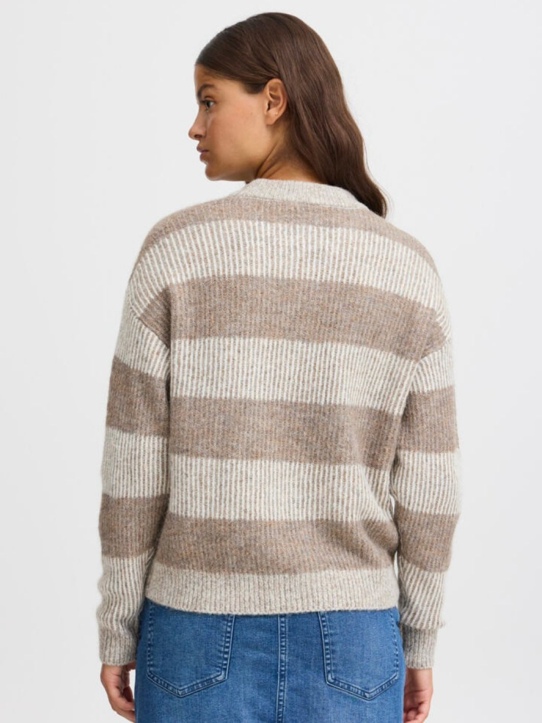 Fin strikket genser med rund hals, lange ermer og en rett passform. Genseren har et nydelig strikkemønster og er melert i fargen.