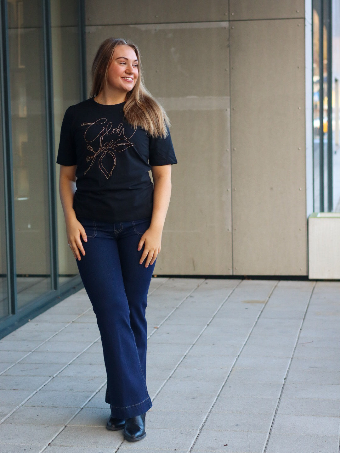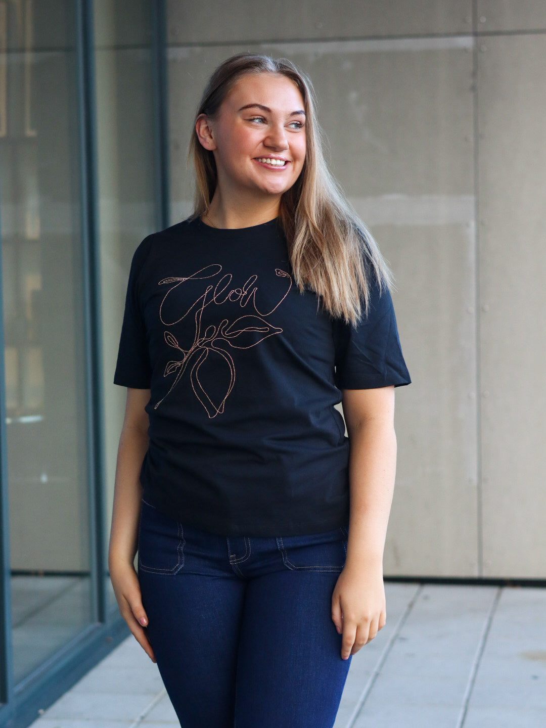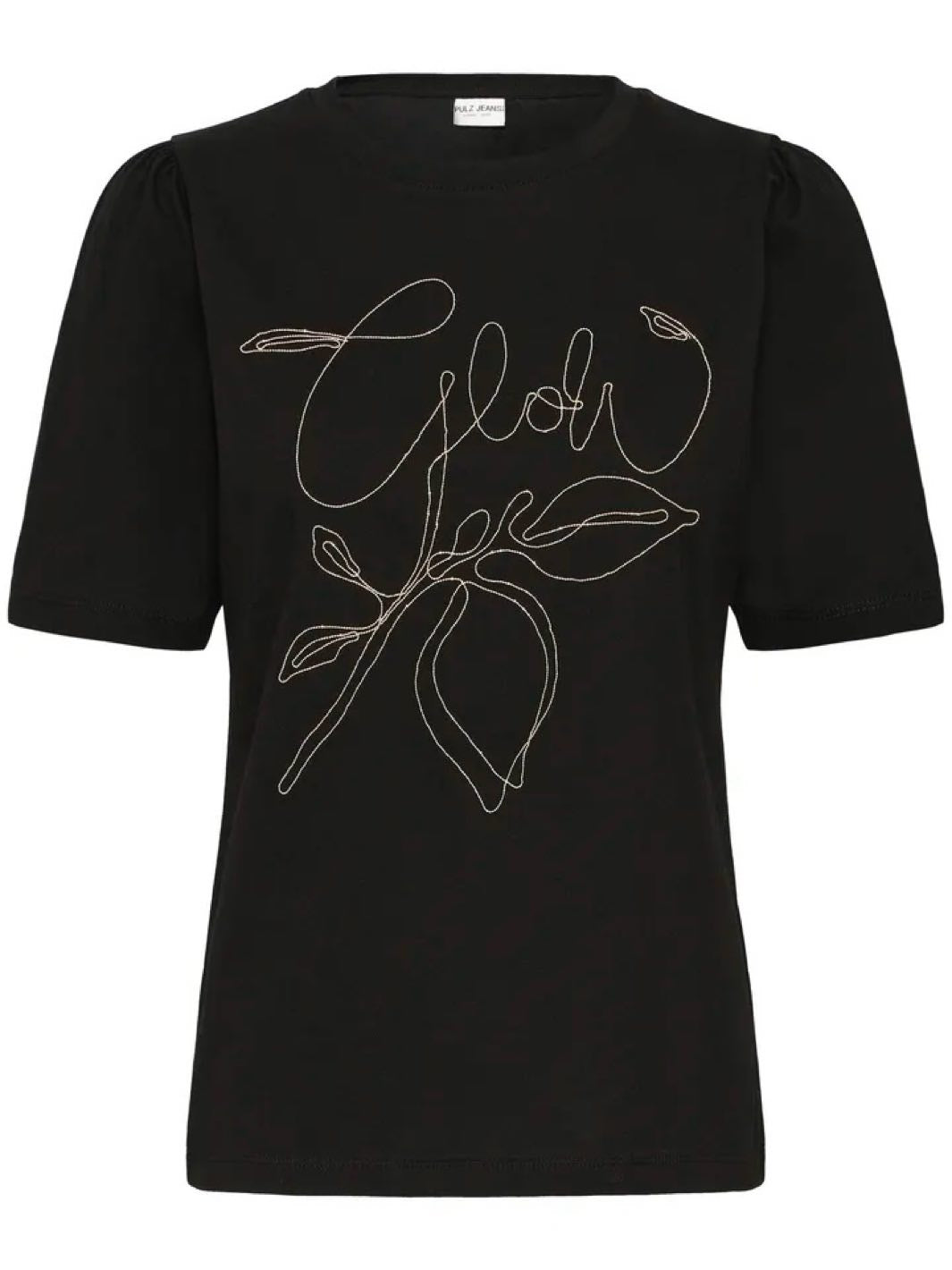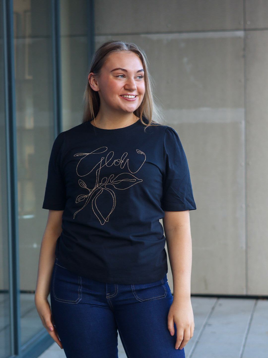 T-skjorte med rund hals, korte puffermer og en rett passform. T-skjorten har print foran.