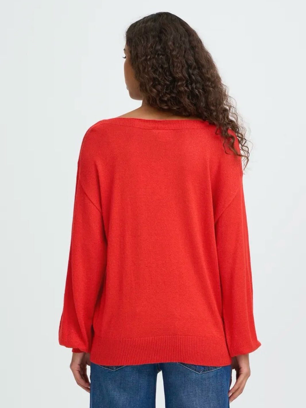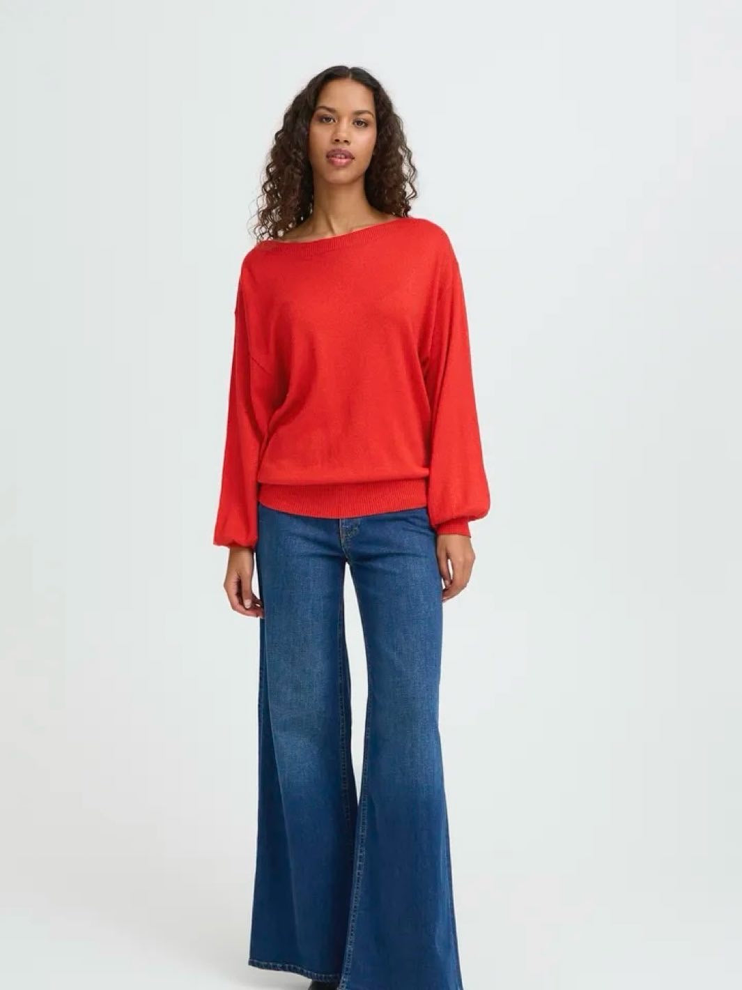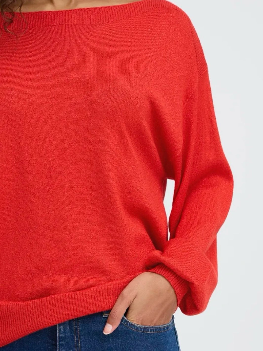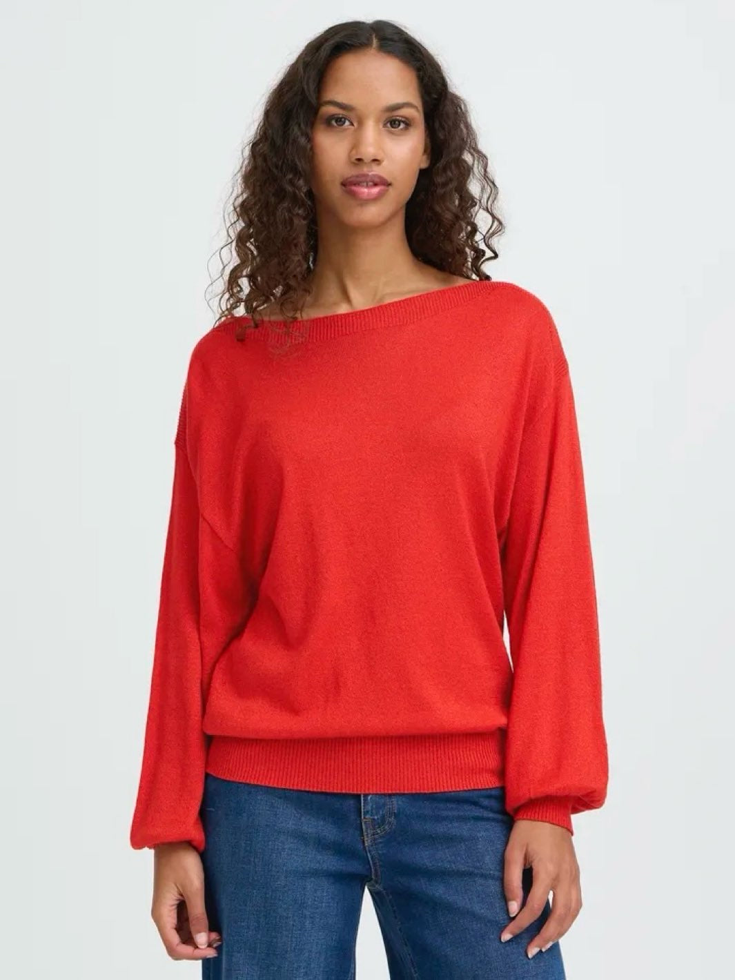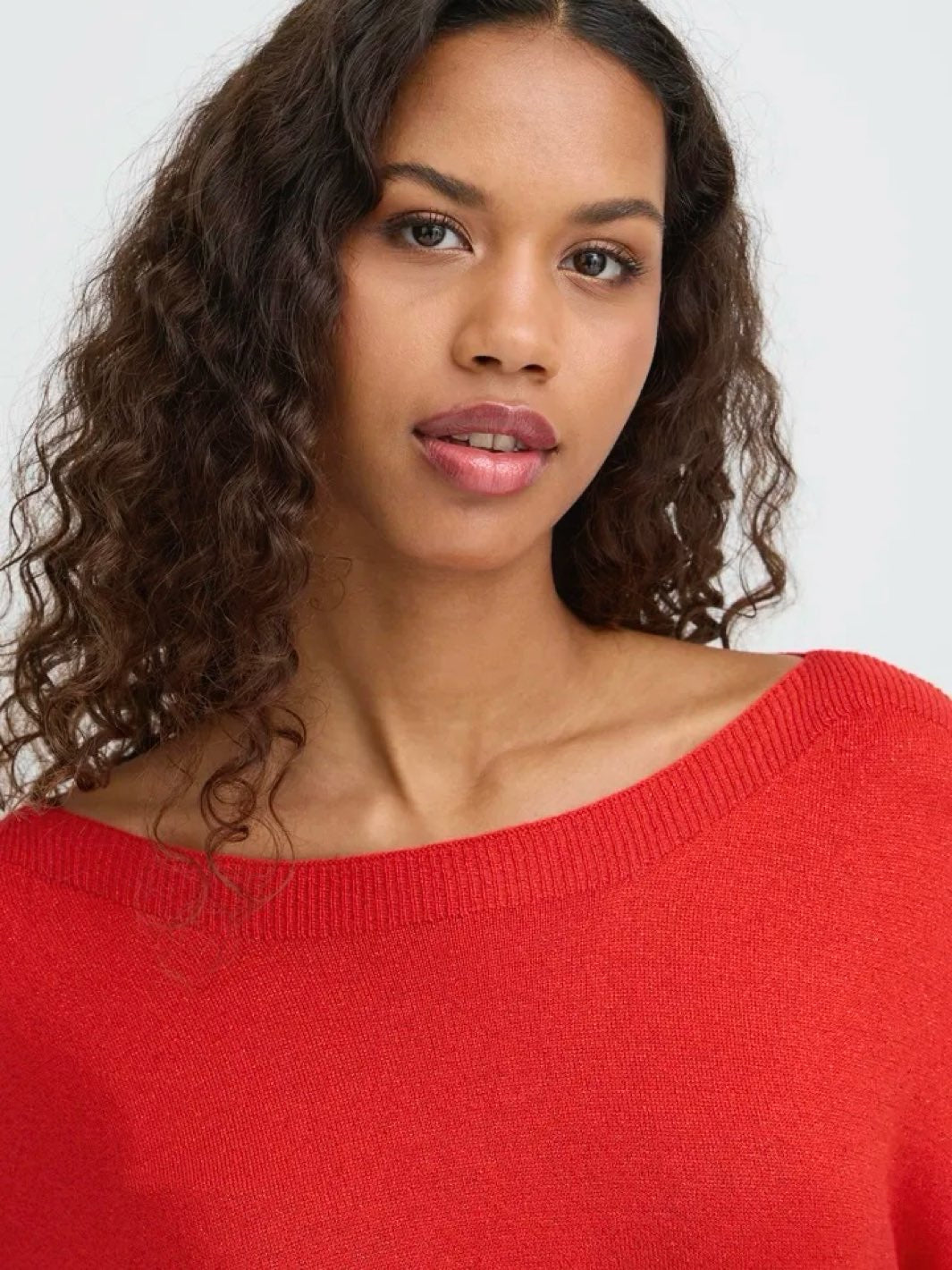 Genser med glitter, båt hals og lange ermer. Genseren har en avslappet fasong og ribbestrikket kanter.