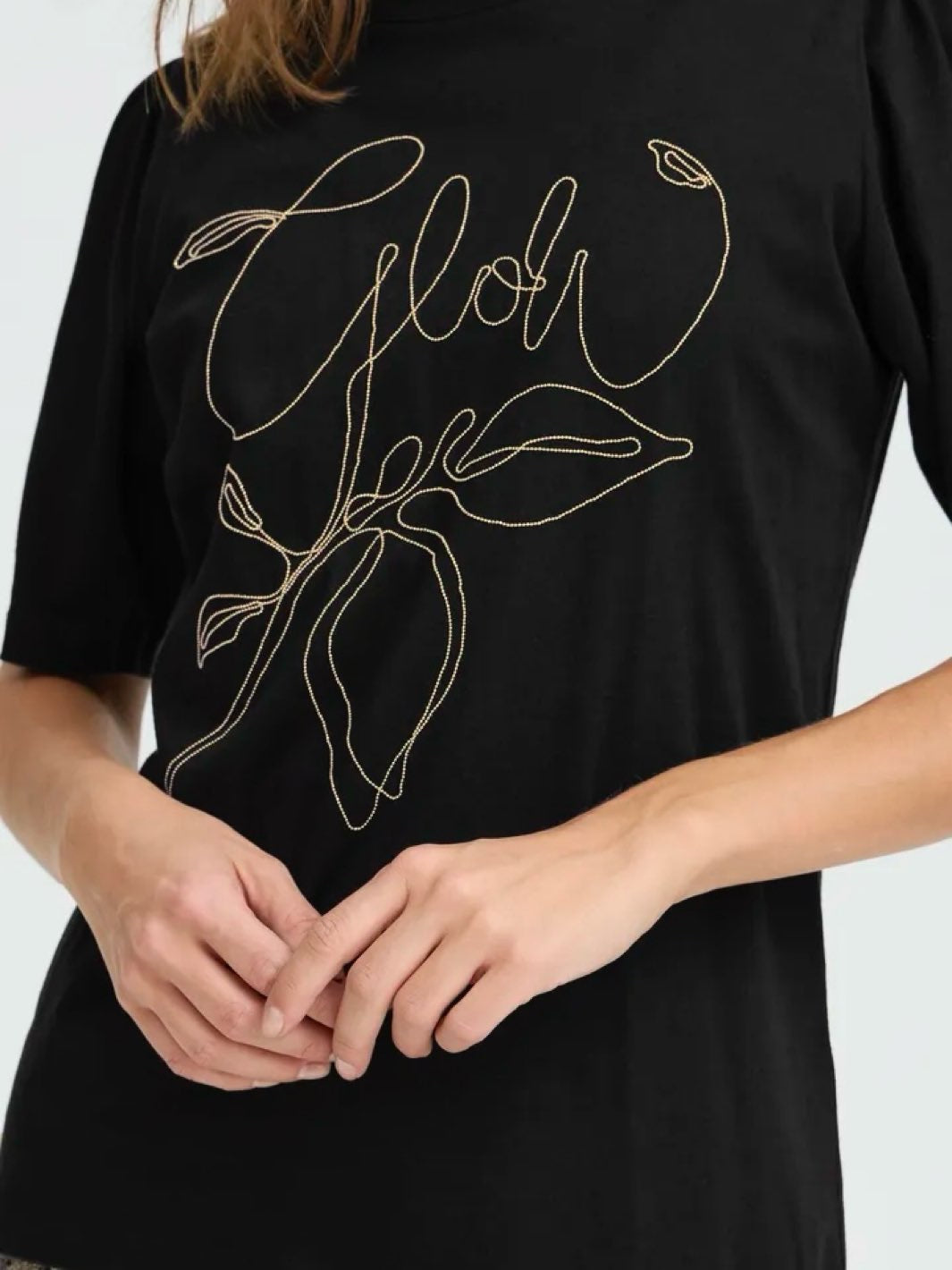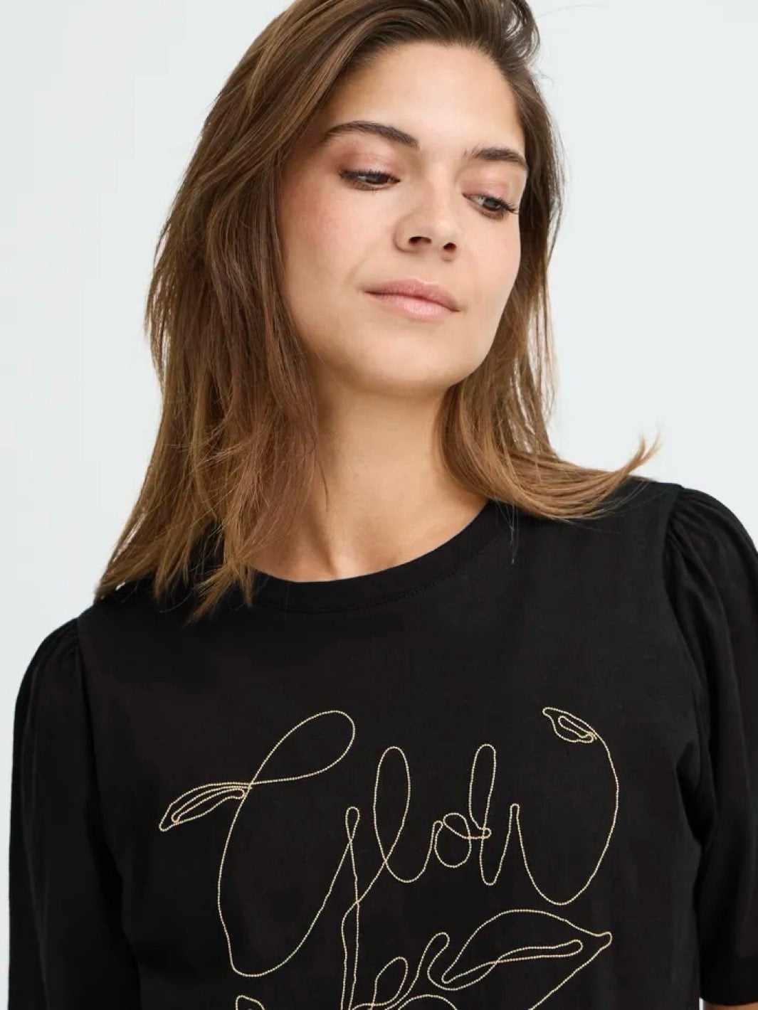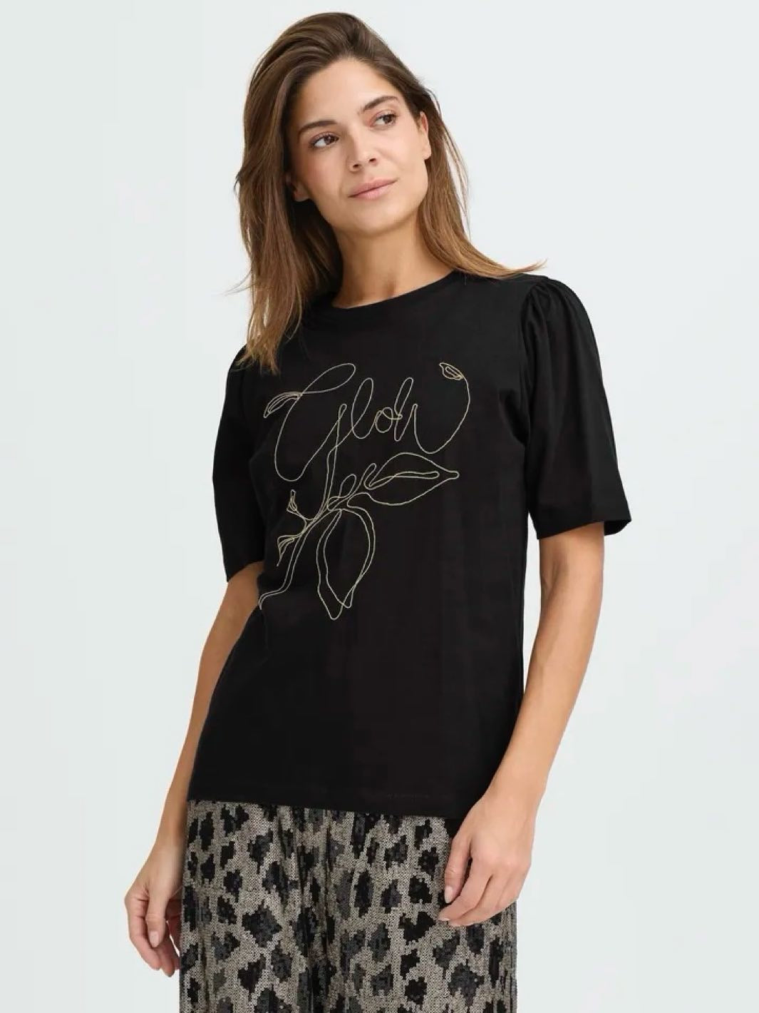 T-skjorte med rund hals, korte puffermer og en rett passform. T-skjorten har print foran.